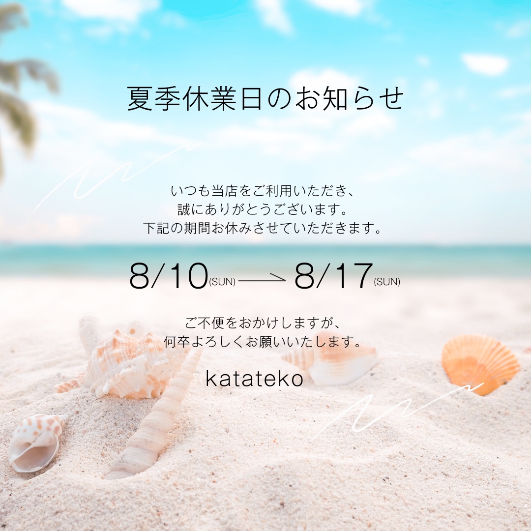 夏季休業日のお知らせ | katateko/カタテコ オンラインショップ