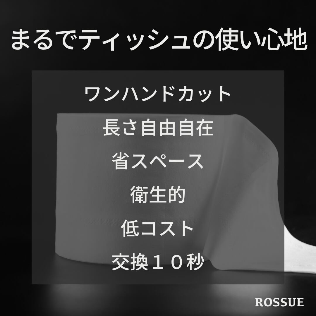 これまでのロールペーパーホルダーは片手でペーパーをカットする事ができませんでしたが、ROSSUEは片手でカットできる画期的なアイテムです!カットした後もペーパーが浮き上がりつかみ取りやすくなっているからまるでティッシュのように使える!そのうえ交換も簡単でとっても使いやすいです!シンプルで、おしゃれアイテムとしても使えるデザインになっています。